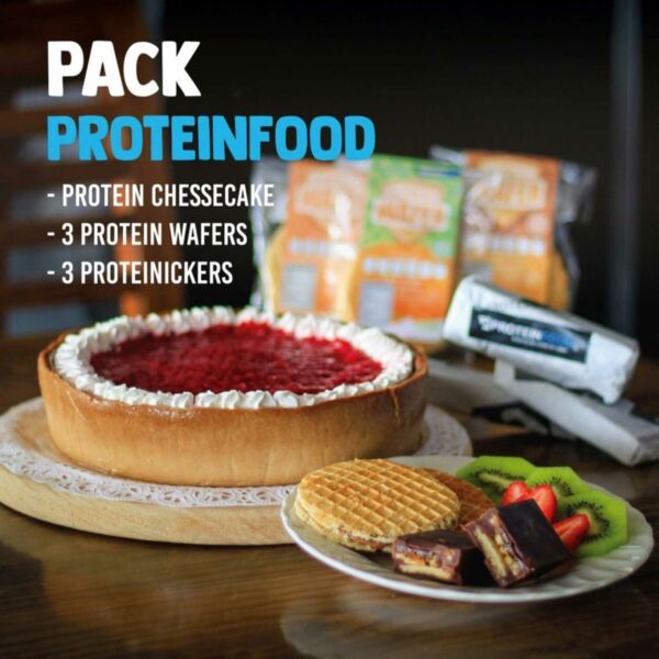 Pack proteico para compartir. 1 pastel de Cheesecake +2 proteinwafer (elegir sabor entre limon, cajeta y cacao) +3 proteinickers (elegir sabor entre cajeta, cacao o gansifit)
