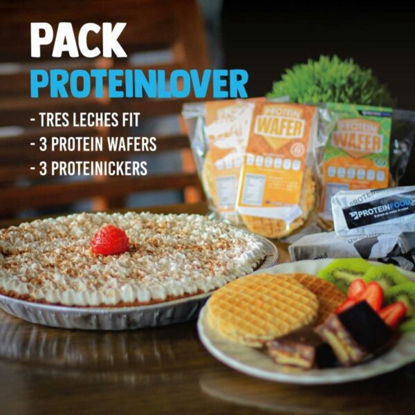 Pack Proteinlover para compartir. 1 pastel de Tres leches+2 proteinwafer (elegir sabor entre limon, cajeta y cacao) +3 proteinickers (elegir sabor entre cajeta, cacao o gansifit)